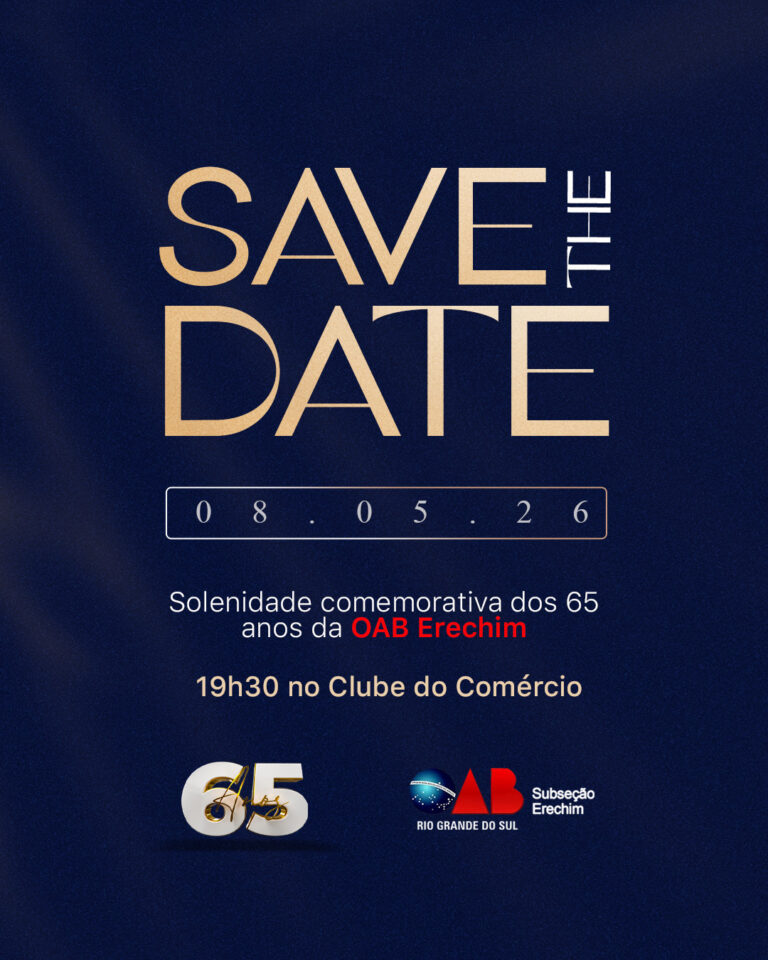 65 anos de história, compromisso e defesa da cidadania. No dia 08.05.26, às 19h30, no Clube do Comércio, celebramos a trajetória da OAB Erechim, construída...