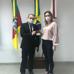A Subseção Erechim realizou, na manhã desta sexta-feira (23), a entrega de credenciais para dois novos advogados. A advogada Brenda Alberti participou da solenidade para receber sua credencial física, tendo em vista já ter prestado compromisso através de videoconferência realizada pela Seccional no dia 26/05/2020.